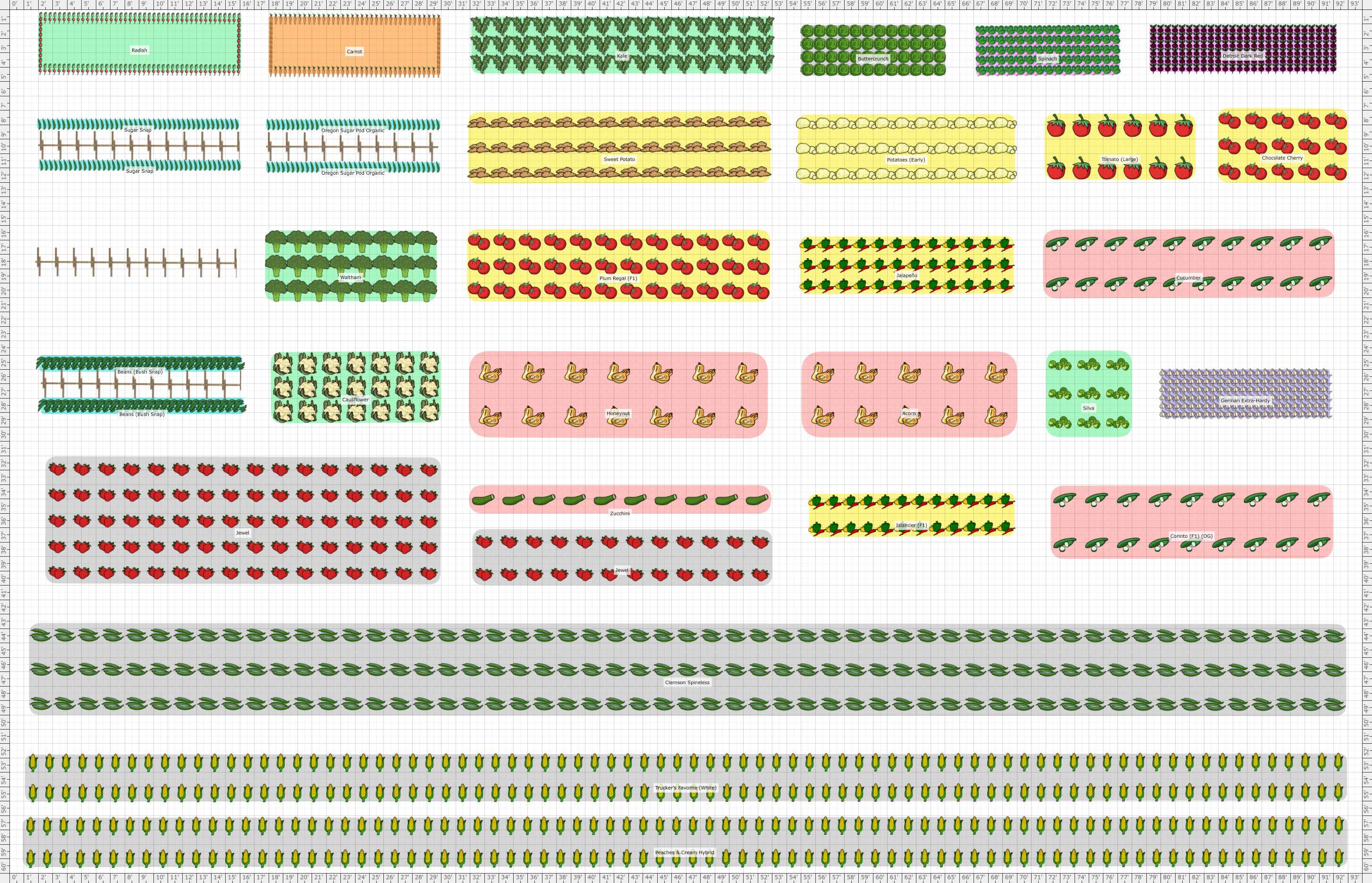 | | Plant | Number | Spacing | Spacing in Rows | Notes |